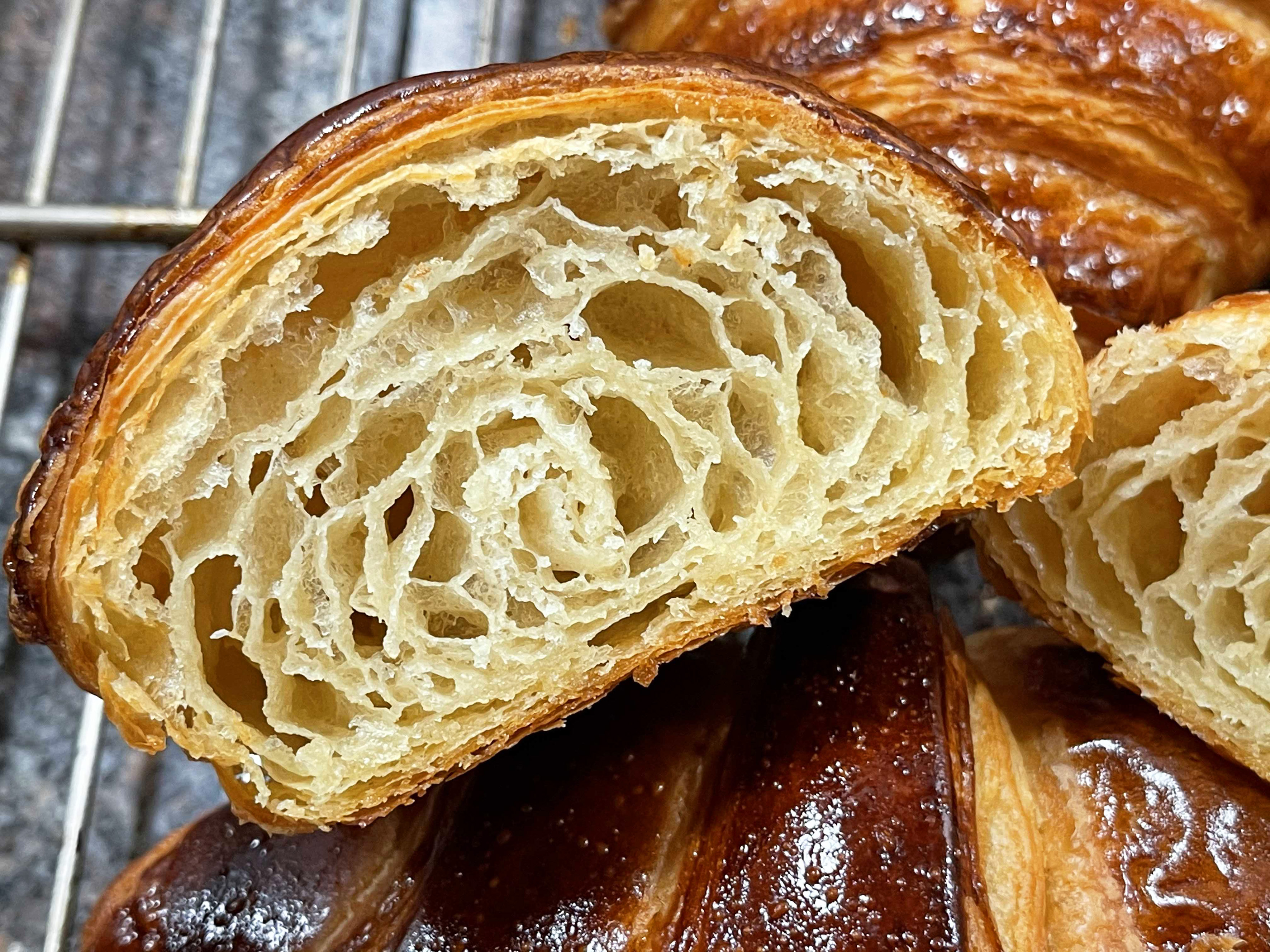 - Den Teig in 4 rechteckige Teigline von etwa 650 g teilen.