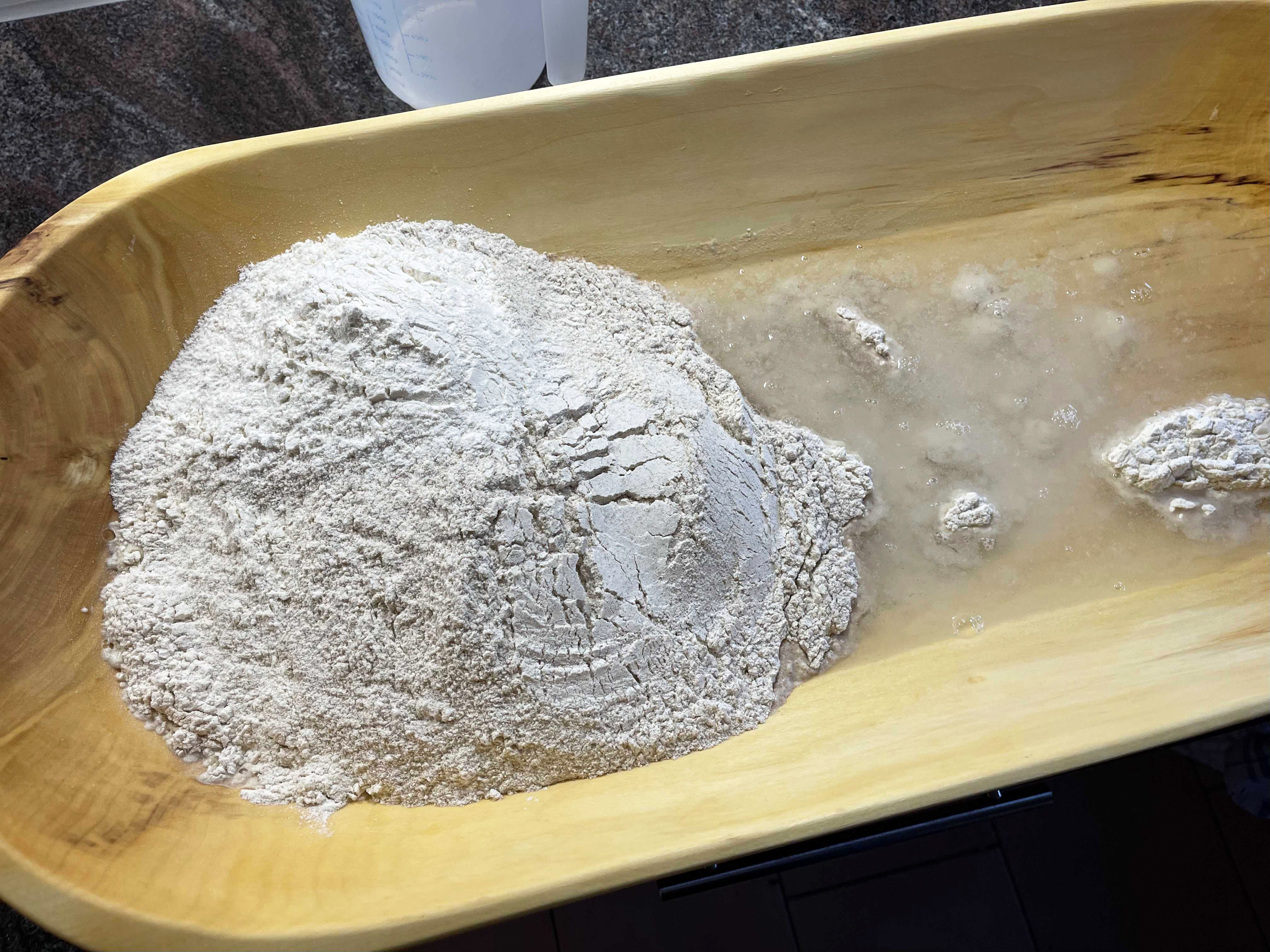 Ich nähre mich natürlich jetzt von meinen Erfahrungen mit der Rezeptentwicklung für die „Heimatbrote“. Unter anderem habe ich mich dabei intensiver mit Quellstücken beschäftigt und festgestellt, wie selten ich sie früher verwendet habe. Was schade ist, weil sie nämlich eine tolle Saftigkeit in den Teig bringen. Und zwar ohne wesentliche Beeinträchtigung der Teigstruktur, wie es bei Brüh- und Kochstücken manchmal sein kann, wenn man es mit ihnen übertreibt.